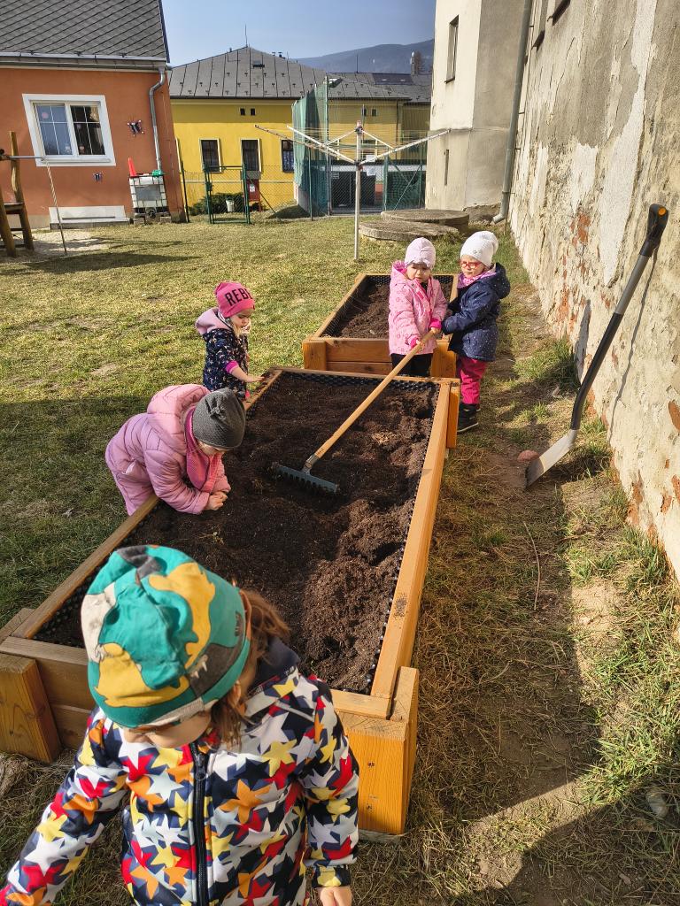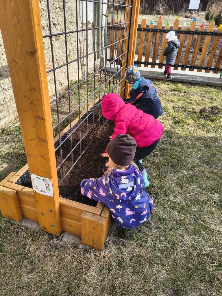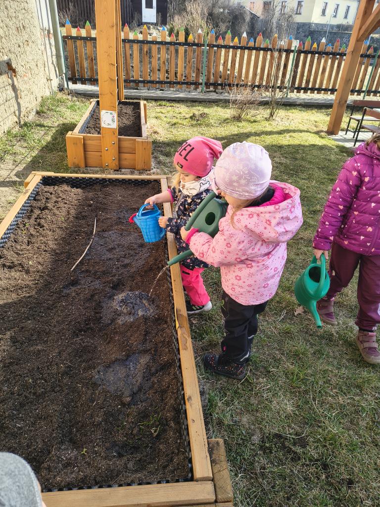 V dalších dnech se o naše záhonky pravidelně staráme – zaléváme je a pozorujeme první změny. Děti mají radost z toho, že mohou zahrádku starat a učí se trpělivosti při čekání na první klíčky.