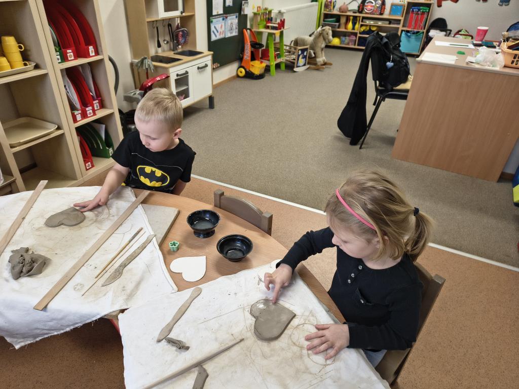 Kromě práce na zahradě jsme si také vyzkoušeli tvoření z keramické hlíny. Děti si tím procvičují jemnou motoriku, seznámily se s pracovním postupem a k čemu keramická hlína slouží. Vytvořily si krásné překvapení pro své maminky k svátku.